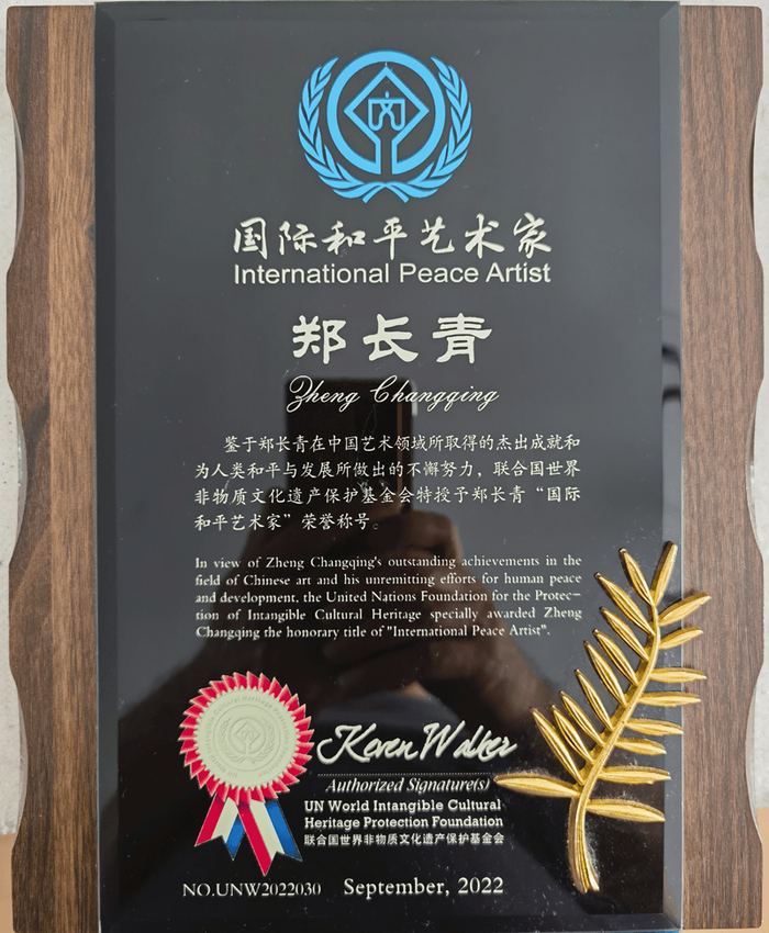 当历史的钟声敲响在公元2022年的时候,我国艺术界时隔六十七年,又一次迎来了久久期盼的荣耀——《国际和平艺术家》奖!此项荣耀被再次加身的,就是现已担任中国书画院国画院院长,有着传奇艺术经历,早已在业内名传全球的郑长青先生。