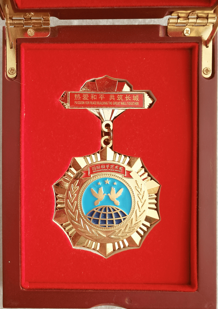 《国际和平艺术家》这项被全球艺术界奉为最高荣誉的奖项,在我国历史上,只有齐白石先生于1955年曾经获得。彼时的白石老人已年过九旬,当他接过那块由联合国权威机构颁发的沉甸甸的奖牌时,这位一生荣誉无数的一代国画巨匠,被感动得热泪盈眶,他说:“《国际和平艺术家》的称号,加在了我齐白石的名字上,这是我一生至高无上的荣耀,也是全体中国人民最高的荣耀”除了这枚奖章和证书之外,还奖励齐白石三万五千元的人民币。那次颁奖,当时在国际国内产生了巨大反响,也为齐白石先生后来成为全球公认的艺术大师,起到了重要作用。