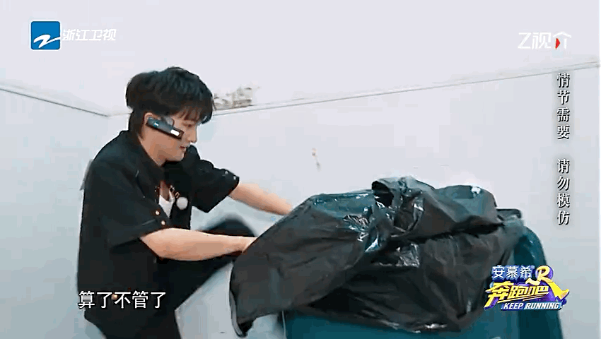 周深跑了一圈一眼瞄准角落的垃圾桶,并将其作为最终躲藏地点。只见他藏进垃圾桶给自己盖上一层垃圾袋,甚至在最顶层又加了两袋垃圾。我愿称你为大宗师级捉迷藏玩家!