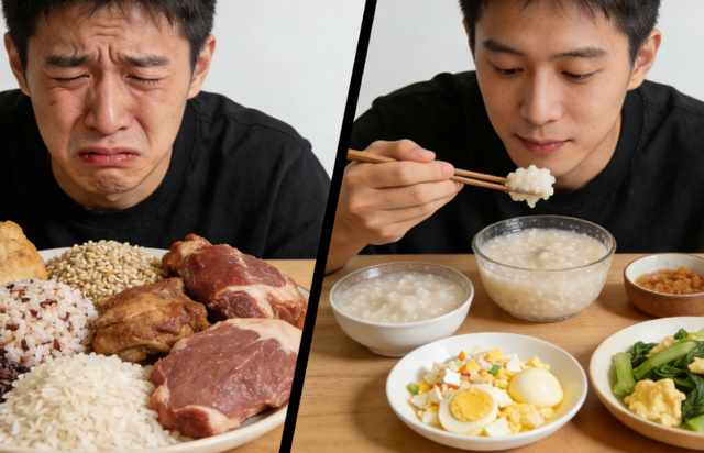 如果你刚调整饮食就出现“更胀、更堵、更想吐”,常见原因是一次吃太多、吃得太快、食物虽然健康但不够软烂,或者蛋白质和主食比例失衡。解决思路通常不是继续“更清淡”,而是把份量分散到一天多次,咀嚼更充分,烹饪更软烂,口味更克制。