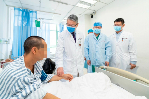 早上8点,佛山市第一医院刘永耀书记和陈国强院长特意来到心脏外科病区看望即将出院的付成,并为他送上鲜花,祝贺他顺利康复,回归正常的生活。