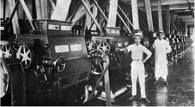 一战期间,和面粉一样,荣氏纱厂也迎来了难得的发展契机。1915年荣氏兄弟出资18万元,创办申新纺织公司。到1922年止,申新已在上海、无锡、汉口等地设立4个厂,产纱绽达13万余枚。此后短短的16年内,申新通过不断并购,扩产,从1家厂扩大到9家厂,占有全国纱锭总数的20.6%,成为全国闻名的棉纱之一,荣氏兄弟因此又被誉为旧中国的“棉纱大王”。