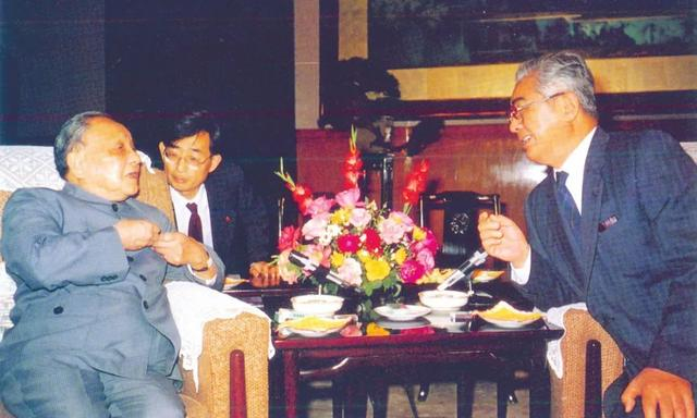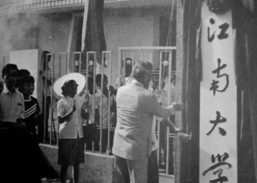1985年,荣毅仁(右一)出席江南大学恢复原名仪式