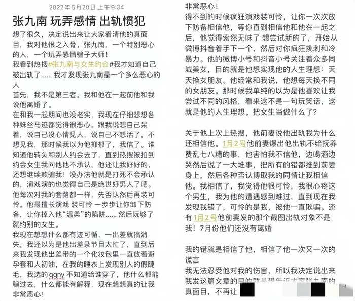 5月20日,一个网名叫“萌啊萌”的女孩爆料张九南玩弄感情,称他是出轨惯犯。