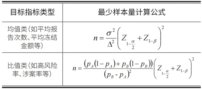 表2 目标指标不同类型时的最少样本量计算公式