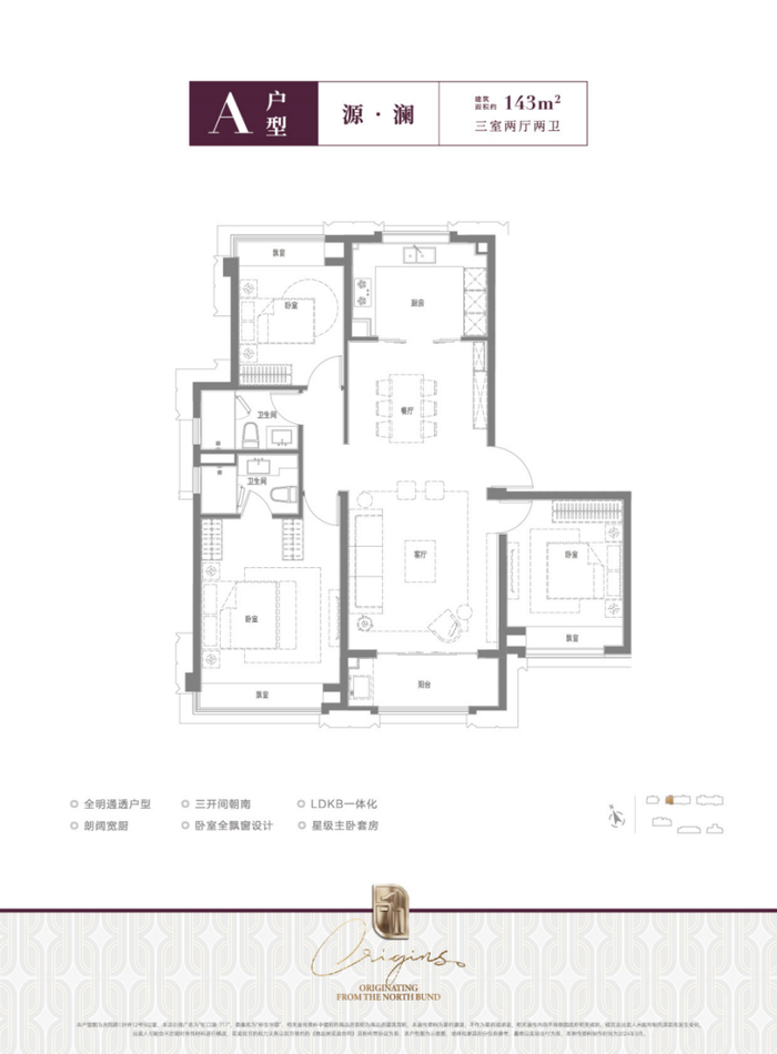 值得注意的是,2梯2户的143户型得房率只有72%不到,即便算上飘窗和门厅等所谓的“综合得房率85%”,实际可利用的居住空间相对其建筑面积而言不算高。