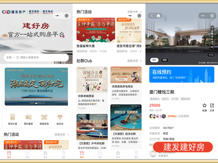 从公域破圈到私域深耕,建发房产持续突破传统,在数字阵地中不断升级功能、优化服务,为客户带来便捷、美好的品质生活体验。
