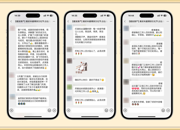 闽南非遗博饼,承载着团圆的意蕴与共享的乐趣;而建发房产的创新演绎,让这一民俗成为“传统与现代交融、地域文化与客户情感联结”的桥梁。从房开板块以博饼活动为契机吸引客户参与,到物业板块通过社群运营深化社区服务温度,再到商管板块依托商场联动扩大品牌影响力、钻石会平台以权益整合实现用户深度沉淀,建发房产以“新中式生活匠造者”的定位,推动服务从单一房产领域延伸至生活全场景,有效满足了客户多元化需求。
