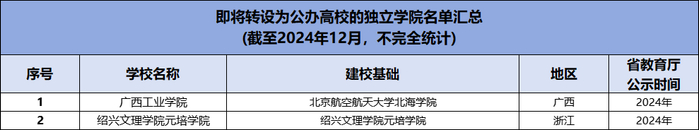 虽未经省教育厅公示,但也有部分独立学院明确提到将转设为公办本科的消息。