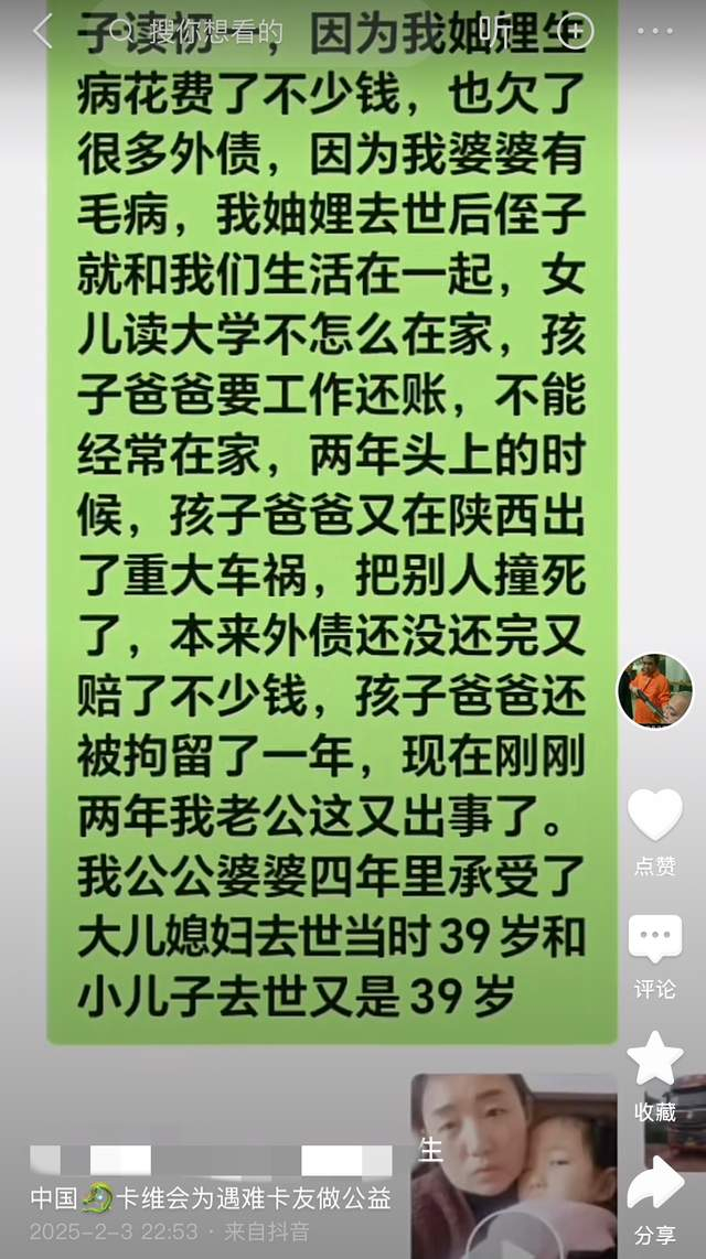 一个为家庭拼搏,且大年初六还在外跑车的卡友,真的让人敬佩,不过他的去世,让其本就孱弱的家庭雪上加霜,也许,他的家庭会就此“散落”。