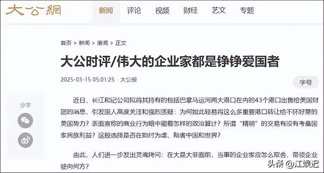 《大公报》的评论文章言辞犀利,直指问题的核心,3月15日的文章指出,这笔交易并非单纯的商业行为,而是“以合法手段掩盖非法目的”,可能威胁中国的“一带一路”倡议和能源安全。