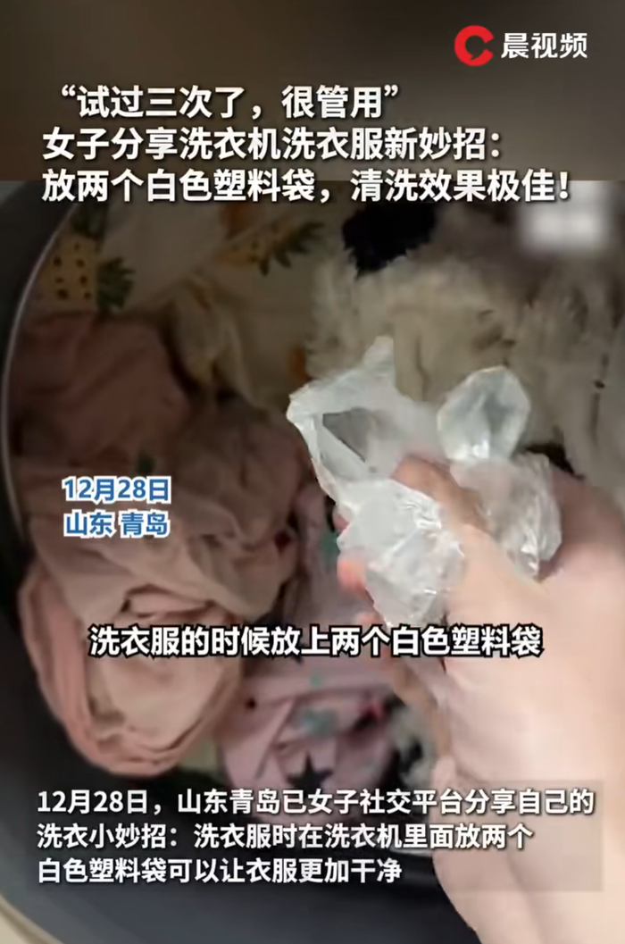 放塑料袋后洗得更干净,大概率是因为她每次洗衣机里塞的衣服太多,衣服缠绕在一起,不利于洗涤,放入塑料袋后,光滑的塑料袋在衣物间起到润滑作用,从而减少衣物缠绕。