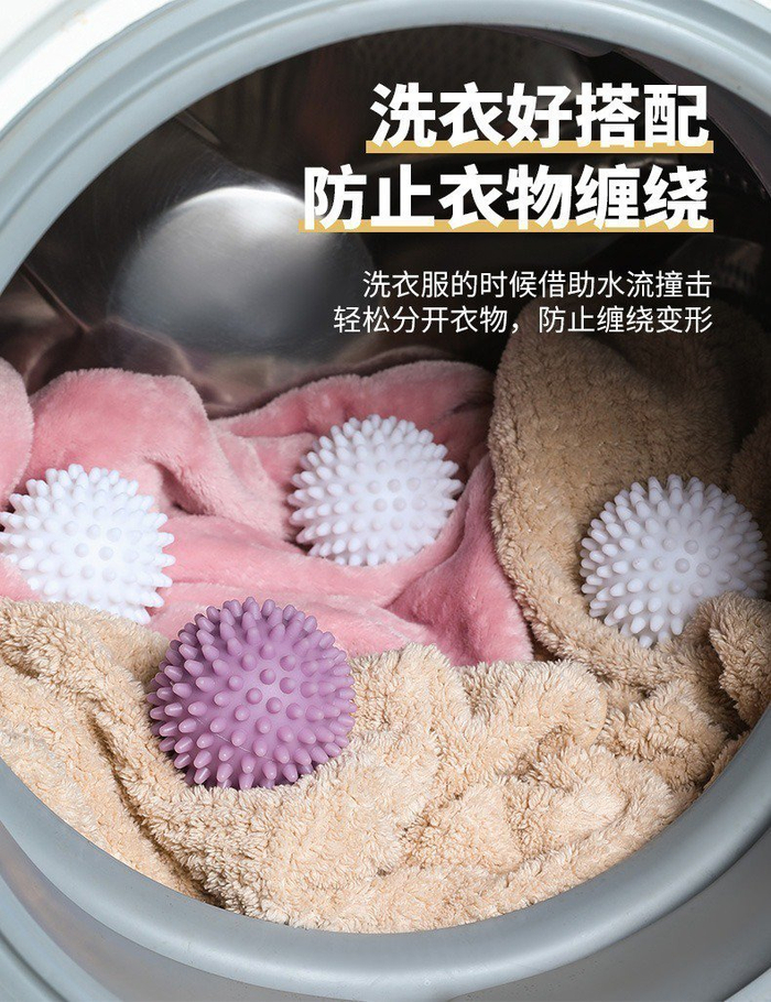 洗衣球通常是中空的塑料球体,表面有各种突起或孔洞,内部可能含有陶瓷颗粒、磁铁或其他活性成分。