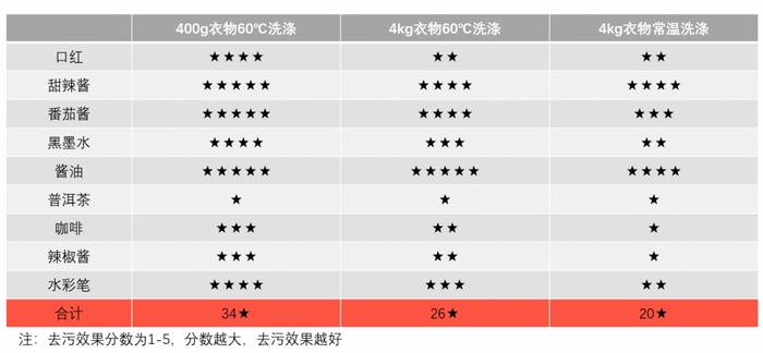 之前就做过测试,洗衣机一次洗400g衣物和一次洗4kg衣物,去污效果存在非常大的差异。