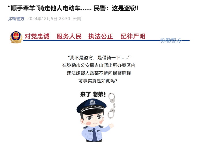 说了这么多,具体到这个新闻,我个人认为警方的处理(盗用非盗窃及口头教育)在特定、有限的情节下可能属于行使行政处罚自由裁量权,因为司法实践中确实存在争议。有的警方认为,你只要把车骑走,哪怕不构成犯罪,起码可以对你进行行政处罚,骑走就属于盗窃。