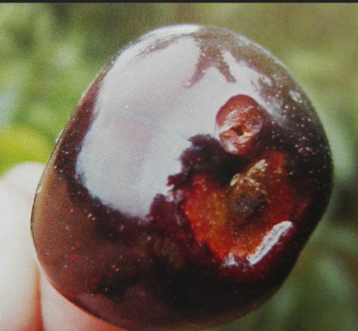 果蝇在樱桃产卵,蛀的洞最后,蛆宝宝会从果实内钻出来到落叶堆或土里化蛹,变为成虫继续完成自己繁衍后代的使命。