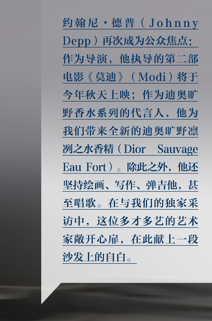 但仅就这次采访而言,德普最引人注意的身份还是作为一名父亲。“有时候你的目光会飘到别的地方,顺着你的视线我看到了莉莉-罗丝·德普,就在一本ELLE杂志的封面上。这种时候我肯定会停下其他话题。她太迷人了,同时令人印象深刻。看着她的眼睛,你会觉得自己在凝视着湖水。就像她妈妈的眼睛,太像了。”