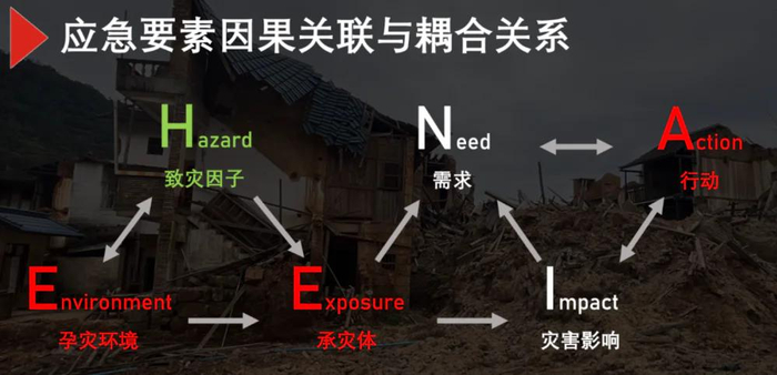 为什么尽可能地收集这些信息?因为在特定的灾害事件和范围内,这5类信息互相之间有密切的关联,两两之间往往呈正相关的关系,所以我们知道两个要素之后,就可以推导出第三个要素。