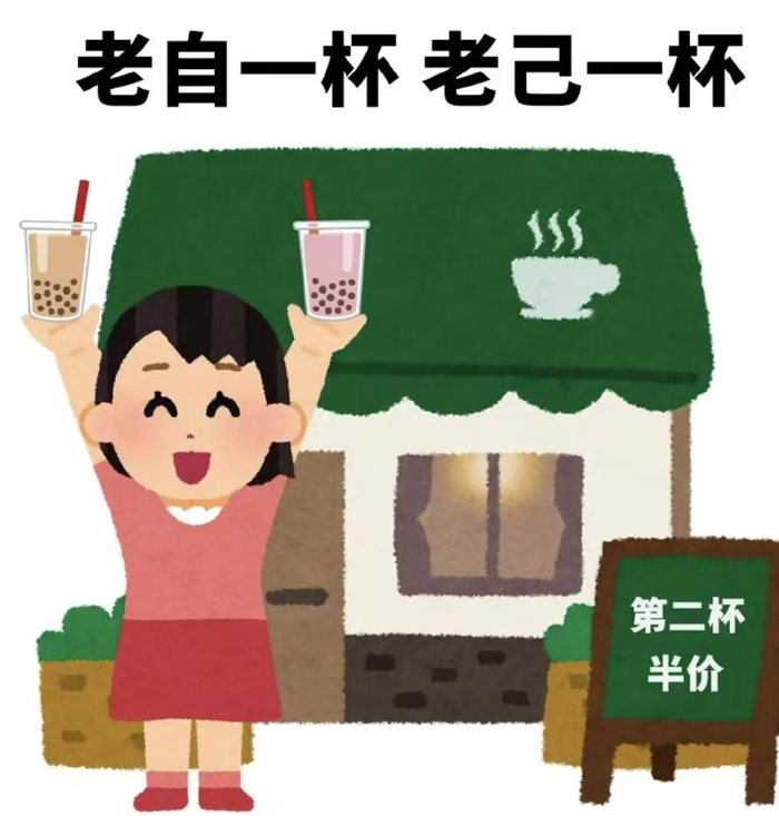 我还挺喜欢这个梗的,感觉是一种对“性缘脑”的破除以及对爱自己的强调。它所描述的往往是曾经总出现在描述恋爱对象爱自己的例子(如买奶茶、买蛋糕等),但它的出现,让我们发现自己也可以做这样的事情。我觉得这是一种对主体性的鼓励!