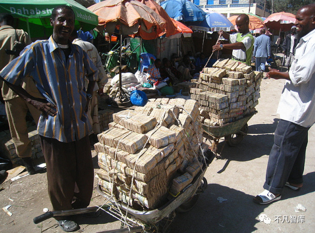 进入21世纪后,非洲的津巴布韦,被西方国家制裁,穷的吃不起饭的亿万富翁们,背着成捆的钞票却买不起东西,一件最便宜的衬衫售价是8.7亿,背着成捆百万大钞的老百姓只能瑟瑟发抖,出门买两颗白菜得用三轮车拉钞票,严重的通货膨胀,也导致这个国家经济彻底崩溃。
