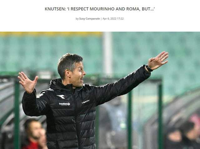 意大利媒体football-italia报道,博多格林特主帅克努特森在谈到欧协杯对阵罗马时表示说,穆里尼奥是最成功的的主教练之一,必须尊重这一点。但克努特森也承认,在打了罗马一个6-1之后,他和穆里尼奥的关系变得有一些糟。