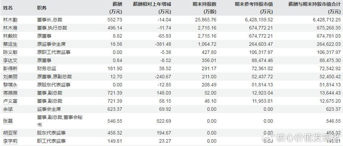 3月8日,东鹏饮料披露《2024年年度报告》,高管薪酬方面,董秘张磊年薪从跳槽前的34.39万元暴涨至546.55万元,薪酬水平位于已披露的A股上市公司董秘前列,此前前任董秘刘丽华2023年以899.49万元年薪位列A股董秘薪酬第二。监事会主席余斌年薪623.37万元,董事,副总裁蒋薇薇、卢义富薪酬为721.39万元,均高于董事长林木勤的552.73万元。