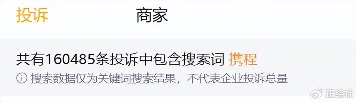 与此同时,用户端的信任也在动摇。截至15日,在黑猫投诉[下载黑猫投诉客户端]等平台上,包括“携程”字眼的投诉记录已达160485条,投诉内容涉及携程机酒退款遇阻、平台调价、差额补偿申诉、捆绑消费、虚假宣传、贷款纠纷等。