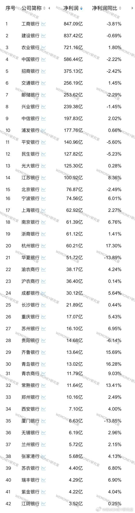 净利润数据来看,12家银行净利润同比下降。其中,华夏银行净利润降幅最大,同比下降13.89%;厦门银行紧随其后,同比下降13.85%。
