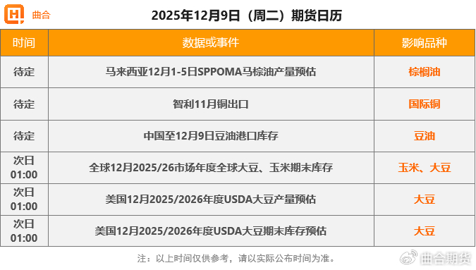 大豆:12月5日,全国主要油厂进口大豆库存671万吨,周环比下降29万吨,月环比下降44万吨,同比上升69万吨,较过去三年均值上升139万吨;豆粕库存115万吨,周环比下降3万吨,月环比上升16万吨,同比上升46万吨,较过去三年同期均值上升54万吨。(国家粮油信息中心)