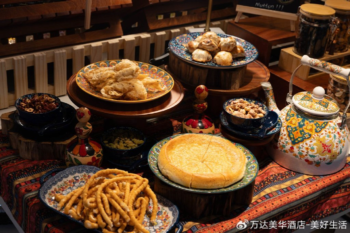 在喀什古城,喀什古城万达美华酒店同样别具风情。饮食上,属地早餐保留奶茶锅和奶茶壶,搭配烤包子、烤馕、羊肉抓饭等本地色彩浓郁的美食,更有 “杏” 运万咖啡这一城市限定款供宾客品尝。酒店还秉持本地人良心推荐原则,为客人指明如阿尔茶抓饭店、艾力扎提抓饭店等品尝正宗喀什必吃美食的好去处。