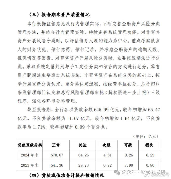 财报数据显示,该行不良贷款率从2024年底的1.71%攀升至2025年6月底的1.84%,突破此前的历史峰值;对应的不良贷款规模也从11.07亿元增至11.93亿元,短短半年时间增长7.77%,资产质量下行压力显著加大。