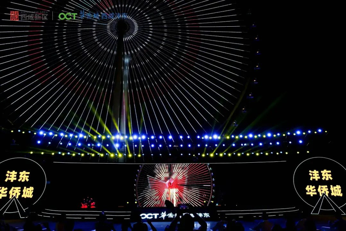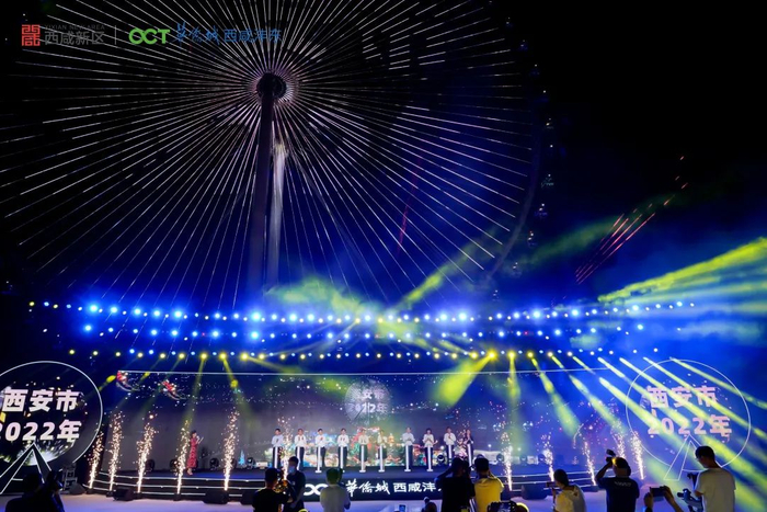 伴随着美轮美奂的光影秀,西安欢乐海岸·OCT1314摩天轮正式与大西安市民见面。“你好西安 感谢久等”“西北第一高摩天轮”等深情表白在夜空绽放,钟楼、大雁塔等西安地标建筑在摩天轮上闪耀,地空联动、声光同步,展现着多彩、多元、时尚的西安魅力,为沣东华侨城文旅融合示范区“旅游核”画上了点睛之笔。