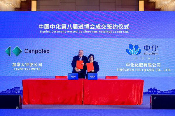 (能动Nengdong2025年11月6日讯)第八届进博会期间,中化化肥有限公司与加拿大钾肥公司(Canpotex)签署2026-2028年备忘录。根据双方达成的共识,在备忘录期限内,中化化肥将继续独家从Canpotex进口加红钾("枫禾祥")用于中国市场销售。 本次备忘录的续签,将进一步深化双方战略合作,助力国内农业生产。