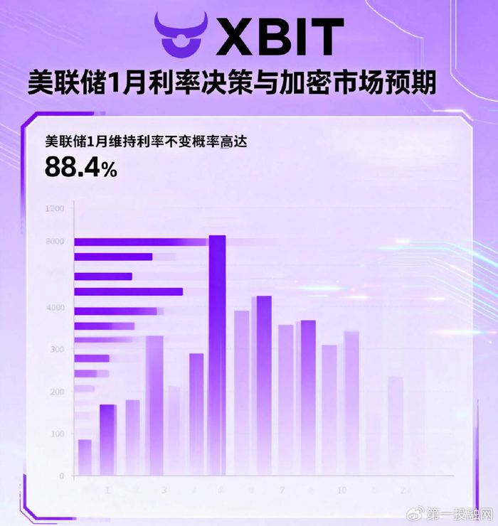 1月8日,据CME“美联储观察”最新数据显示,美联储1月维持利率不变的概率为88.4%,降息25个基点的概率仅11.6%。这一数据与当前XBIT对市场预期判断高度吻合,折射出当前货币政策决策的复杂争议。