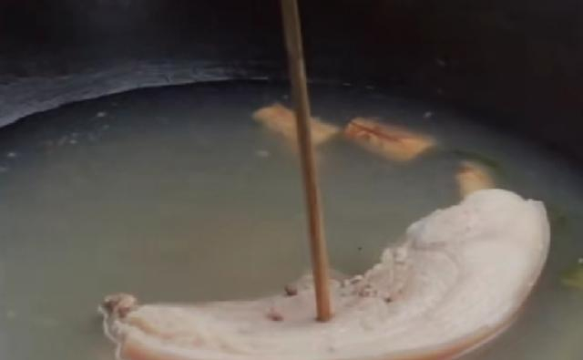 火候准是指在煮肉的时候,大火烧开后转小火要让水温保持在90℃左右,也就是沸腾于不沸腾之间让整块肉受热均匀而闷熟,用竹签插进去沟两段无血水冒出。即可捞出放入凉开水里侵泡使其肉质更加紧实脆嫩,同时也防止“结皮”和影响下一步的刀工操作。