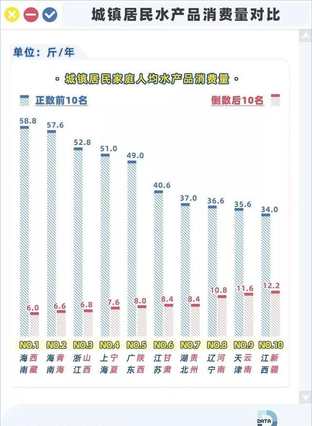 在水产品消费上,海南人民再次荣登榜首,而水产品消费垫底的全为内陆省份。