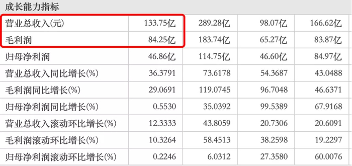 实现毛利润84.25亿元,同比增长29%。