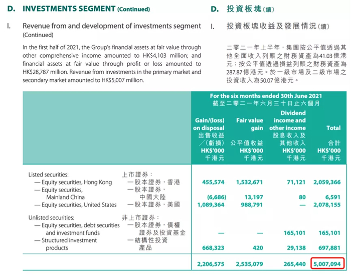 根据其半年报数据,截止到今年上半年,其在一级二级市场股权投资回报已经占总营收的比重超过三成。