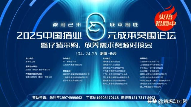 想进一步了解标杆企业的降本经验?2025年关税背景下,饲料原料和生猪行情又会受到怎样的影响?——2025年4月24-25日,猪场动力网将在长沙召开“2025中国猪业6元成本突围论坛暨仔猪采购、放养需求资源对接会”,围绕“成本突围”带来精彩分享!