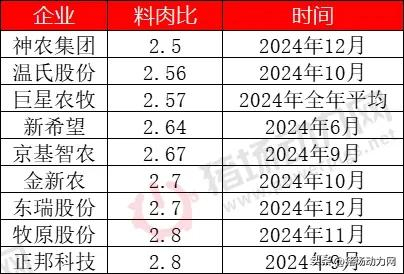料肉比PK:前三均低于2.6,最低已突破2.5