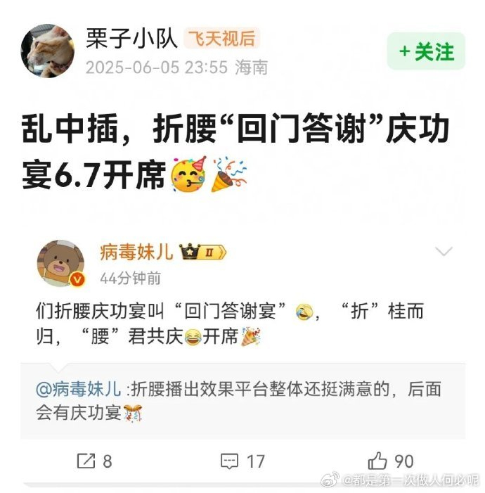 《折腰》要开庆功宴的消息也太让人开心了吧!这部剧从开播就话题不断,现在圆满收官确实值得好好庆祝一下~