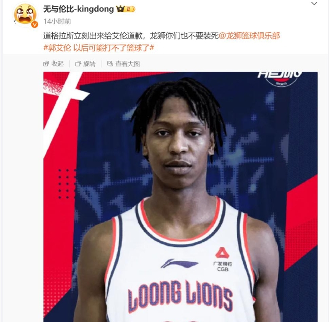 而有一名叫做“无与伦比”的网友爆料了郭艾伦受伤的细节,他称是外援道格拉斯划伤了郭艾伦的眼睛,随后球队打了120,接下来全队没有停止训练,也没有任何队陪同郭艾伦前往医院,而目前也没有任何队友为郭艾伦发声并送上祝福。这名网友一看就是郭艾伦的铁杆粉丝,他认为道格拉斯应该立刻出来给郭艾伦道歉,龙狮俱乐部也不该装死。而且,道格拉斯这个伤人行为已经构成了故意伤害。