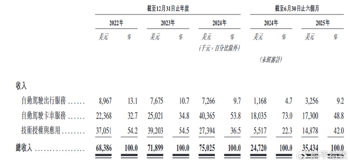 根据公司招股书,2025年上半年小马智行营收3543.4万美元,同比增长43.3%,净亏损9064万美元,同比扩大75%;2025Q2单季度营收2100万美元,同比增长75.9%,相比Q1单季度12%的增速大幅度增快。坦白说,对于一家尚未完全实现规模效应的公司来说,净亏损的扩大是正常现象;而毛利率的持续回升,让他们有了未来盈利的希望。