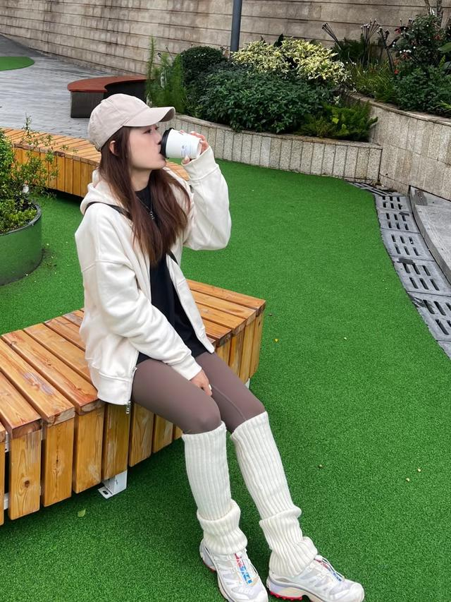 瑜伽裤+萨洛蒙+卫衣,本身服装就偏休闲运动,为了强化造型风格属性,可以增加一些同风格的单品进行点缀。比如搭配袜套拉长腿部线条,佩戴棒球帽提升时尚休闲品位,让整体穿搭造型看着舒适又时髦,给人一种非常简约得体的感觉。