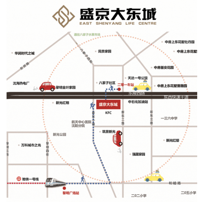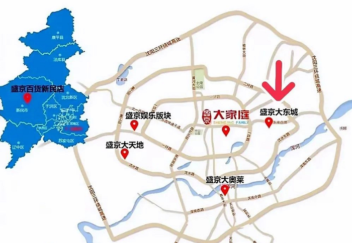 周边新盘也多了商业配套,比如华润置地时代之城和中海汇德里,盛京大东城与两项目的距离均在一公里范围内,步行700米左右。盛京大东城周边大型商场还有龙之梦亚太城等,盛京大东城的加入给沈阳东部商业注入新的活力,成为周边居民逛街购物的新去处。