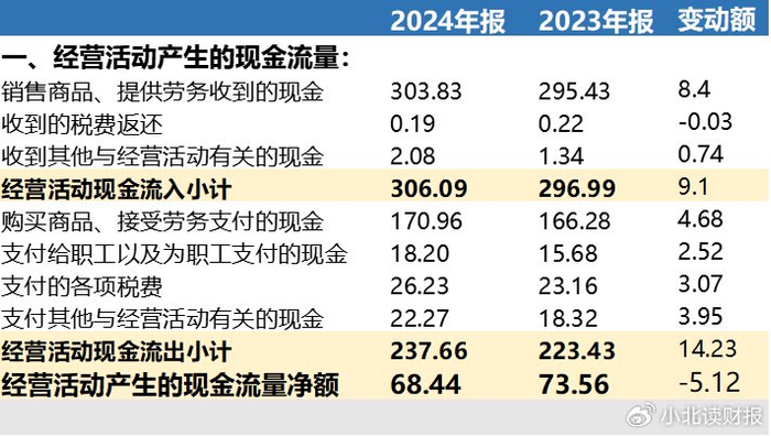 这也是现金流出端导致2024年经营现金流净额减少的原因之一。