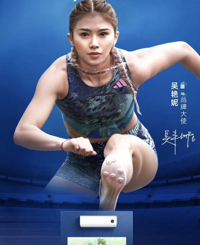 该电器品牌的广告语完美契合吴艳妮在场上场外打造的人设,例如,“不惧非议,只为争鲜。”“拼实力,不影响比颜值。”“天生爱笑,自信闪耀。”