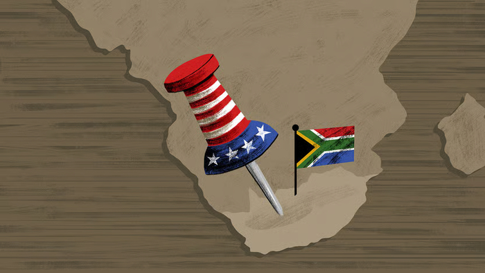 5 月 21 日,南非总统西里尔·拉马福萨走进了这场风暴的视线。拉马福萨是执政党非洲人国民大会 ( ANC ) 的坚定支持者,他热情友好但又极其谨慎。拉马福萨与政府部长、工会主席和特朗普的高尔夫球友一起受邀前往白宫,却在椭圆形办公室遭遇伏击。他原本希望游说南非继续留在《非洲增长与机会法案》(AGOA),这是一项允许许多非洲国家优先进入美国市场的贸易协定。特朗普下令后,视频屏幕播放了一名激进反对派领导人高呼反白人口号的画面。特朗普毫无根据地声称,南非“官员”正在说“杀死农民并夺走他们的土地”。