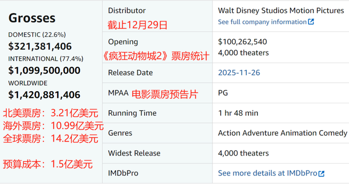 在圣诞加持下,影片周末票房再揽2000万美元,实现了惊人的35%逆跌,北美总票房已达3.21亿美元,下周就会超越前作3.412亿美元的成绩。