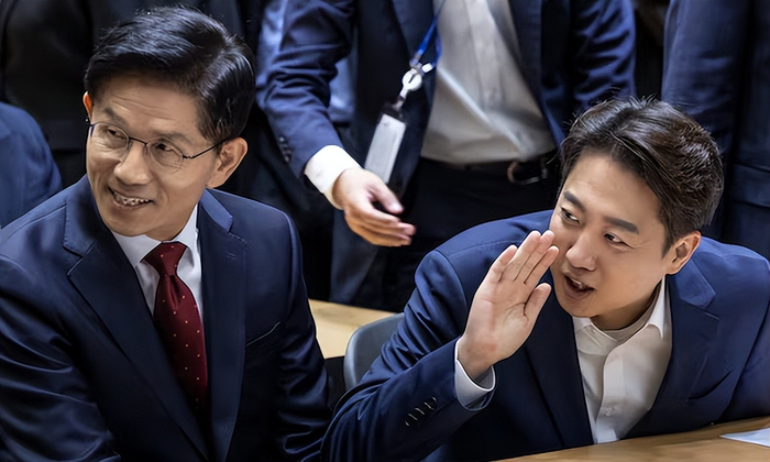 【国民力量党候选人金文洙和改革新党候选人李俊锡】